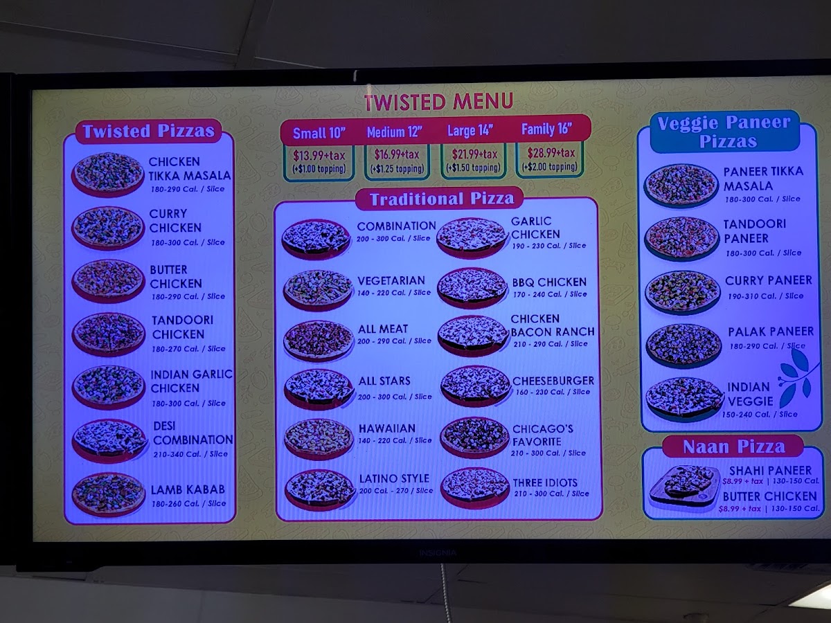 This pizza has our signature tikka masala sauce, All-Natural Tikka Masala Chicken Breast, fresh diced mozzarella cheese, fresh mushrooms, crisp red onions, fresh bell pepper, fresh diced garlic, ginger, & green chilies, garnished with fresh cilantro.